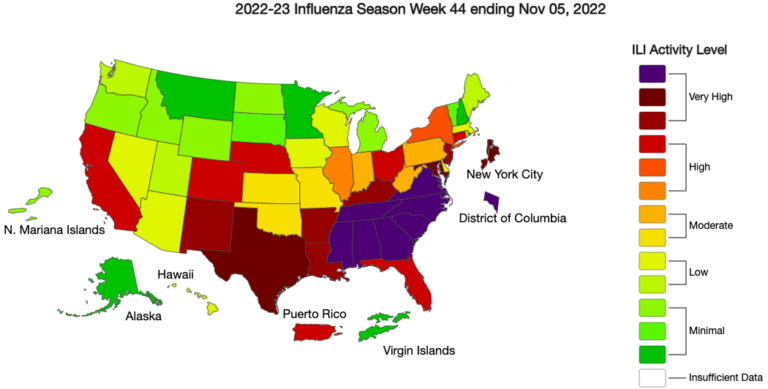 “We’re seeing a higher level of flu activity, both in cases and hospitalizations, than we’ve seen this early in the flu season in a long time,” ACHI President and CEO Dr. Joe Thompson said in the news release. “It can take a couple of weeks to receive maximum protection from a vaccination, and Thanksgiving is two weeks away, so please do not delay. Get your shot now.”