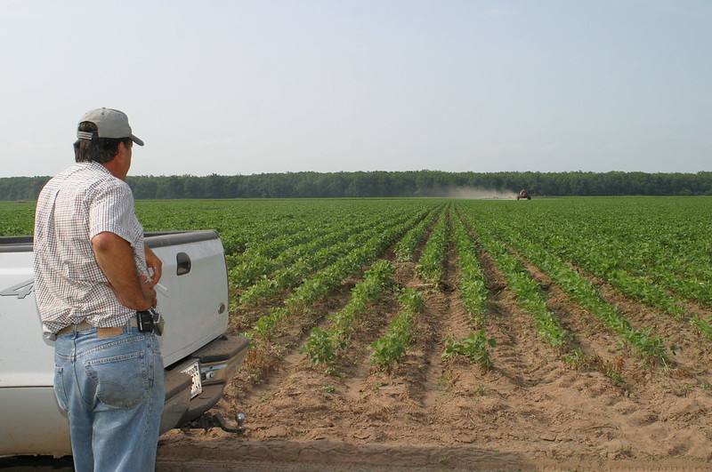 FIELD OF DREAMS – A farmer looks out at a soybean field in this 2003 file photo. | U of A System Division of Agriculture