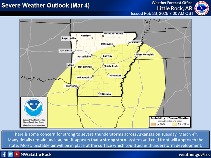 The National Weather Service in Little Rock is eyeing the potential for severe weather on Tuesday, March 4, 2025.
