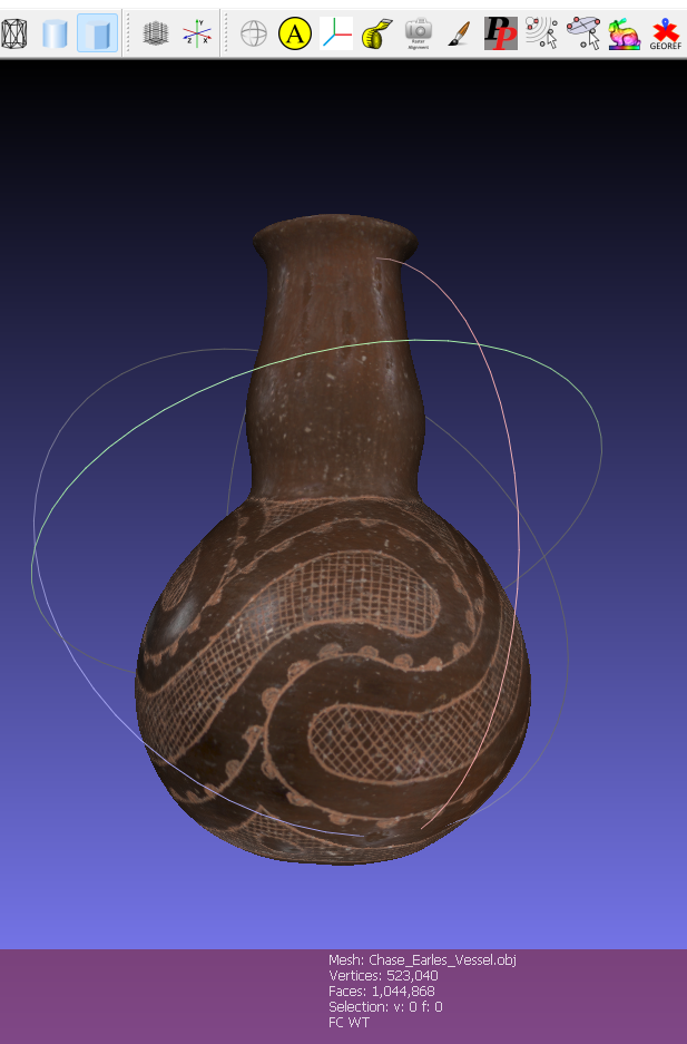 Screenshot of 3D image of bottle. | Caddo artist Chase Earles
