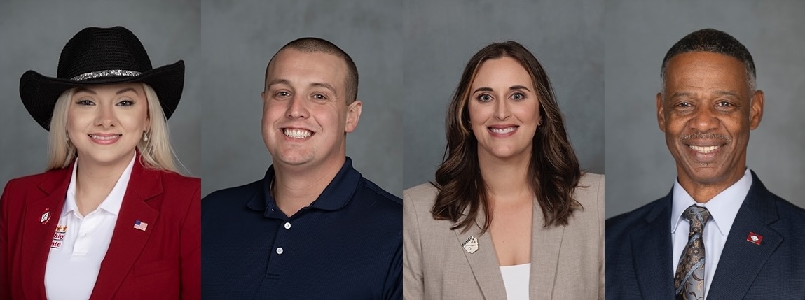 From left: Republican Micah Ashby, Republican Jeb Little, Democrat Hallie Shoffner and Democrat Ethan Dunbar are seeking to challenge incumbent Republican U.S. Sen. Tom Cotton in Arkansas’ 2026 primary elections. | Photos courtesy of Arkansas Secretary of State