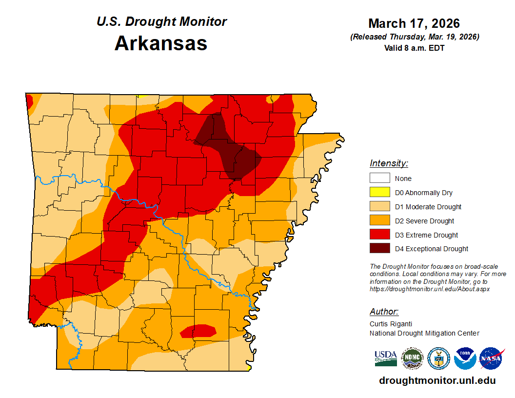 Extreme drought has spread throughout Arkansas.