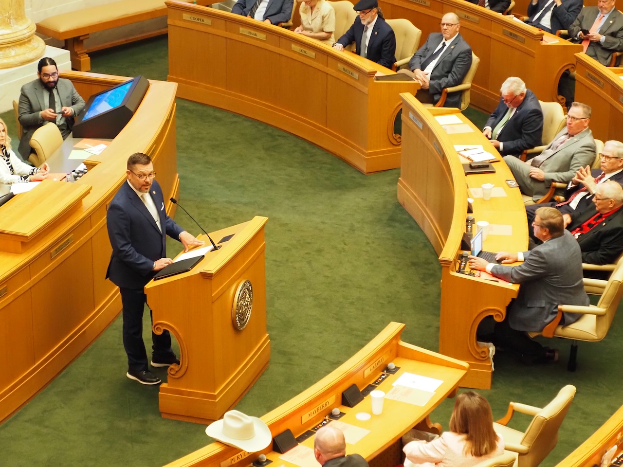 Rep. Bart Schulz, R-Cave City, addresses the Arkansas House of Representatives during a special session on June 18, 2024. | Mary Hennigan/Arkansas Advocate